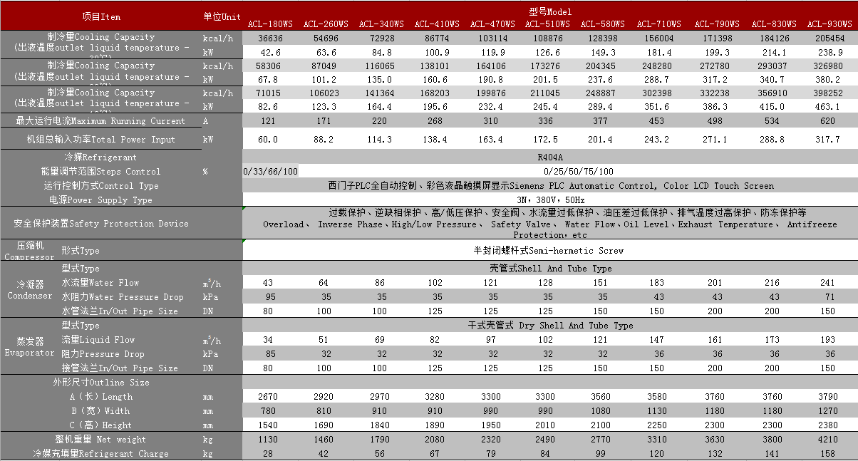 1.以上參數基(jī)於冷(lěng)卻水進/出水溫度為30℃/35℃。